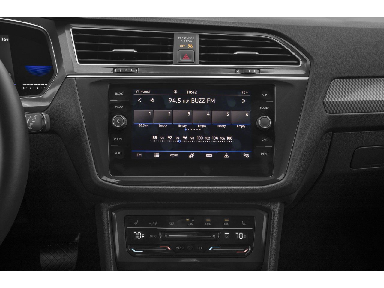 - Radio: MIB3 Composition Media AM/FM/HD -inc: 8" touchscreen, WMA/MP3/FLAC player w/USB-C, voice control, 6-speaker sound system, Qi wireless inductive charger (for compatible mobile phones and accessories), App-Connect smartphone integration (w/Apple CarPlay, Android Auto and MirrorLink) via USB, Wireless App-Connect smartphone integration (for compatible devices) w/multi-phone pairing capability, capability for in-vehicle 4G LTE enabled Wi-Fi (cellular data plan required; includes limited trial), capability for VW Car-Net services (capabilities for certain services vary; requires enrollment or subscription), Bluetooth connectivity (for compatible devices) and SiriusXM w/360L (w/3-month free trial subscription; 360L services require acceptance of Car-Net terms)